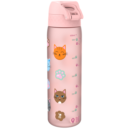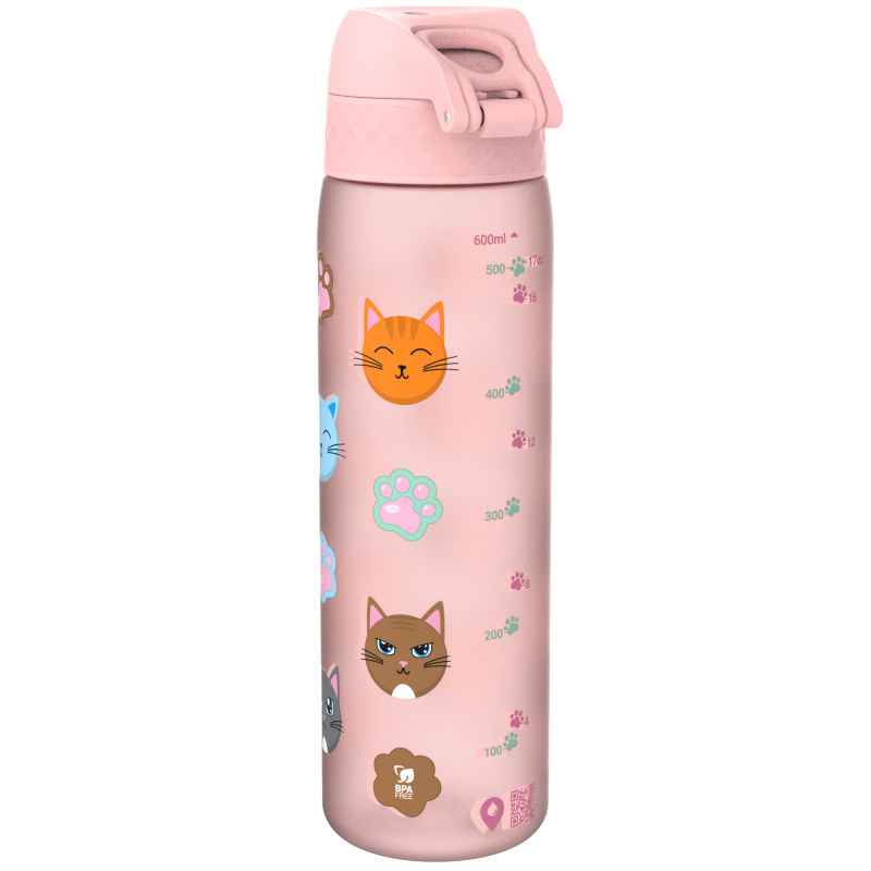 Lekka butelka wykonana z bezpiecznego tworzywa. Jest trwała na uderzenia i szczelna tak, aby picie nie wylało się w plecaku czy torebce. Butelka nie ma słomki, co pozwala na szybkie i zdrowe ugaszenie pragnienia. Dodatkowo wyposażona jest w składany uchwyt i praktyczną podziałkę.