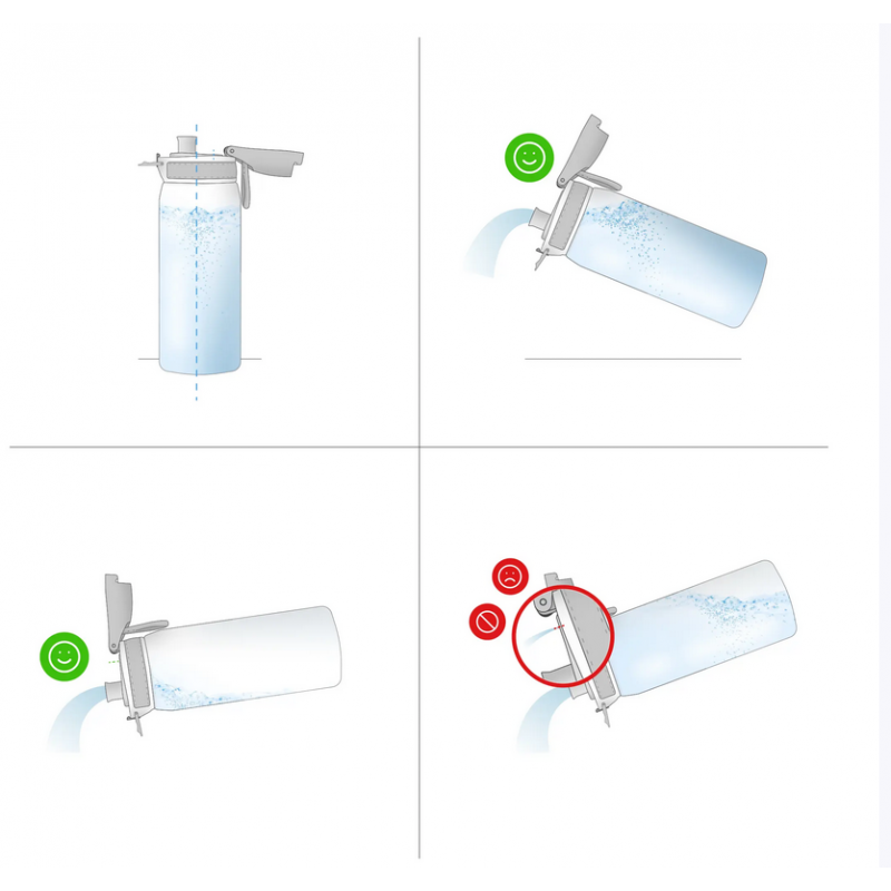 Lekka butelka wykonana z bezpiecznego tworzywa. Jest trwała na uderzenia i szczelna tak, aby picie nie wylało się w plecaku czy torebce. Butelka nie ma słomki, co pozwala na szybkie i zdrowe ugaszenie pragnienia. Dodatkowo wyposażona jest w składany uchwyt.