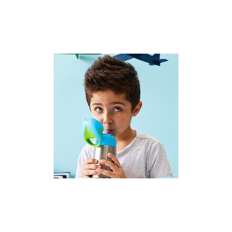 Termobutelka ze słomką marki b.box jest starannie zaprojektowana dla najmłodszych dzieciaczków! Wykonana jest ze stali nierdzewnej - materiału w pełni bezpiecznego, trwałego oraz hipoalergicznego. Dzięki podwójnej, stalowej ściance produkt może utrzymać temperaturę ciepłych napojów aż do 6 godzin, a zimnych nawet do 8!* Dodatkowo, materiał się nie obija ani nie rysuje. Dno butelki wykończone jest silikonem, dzięki czemu nie ślizga się ona na płaskich powierzchniach. Niezwykle szczelna pokrywka daje pewność, że napój nie wyleje się w torebce lub transporcie. Maluszek także z łatwością nauczy się korzystać z butelki, dzięki wyjątkowo prostemu systemowi otwierania na przycisk.