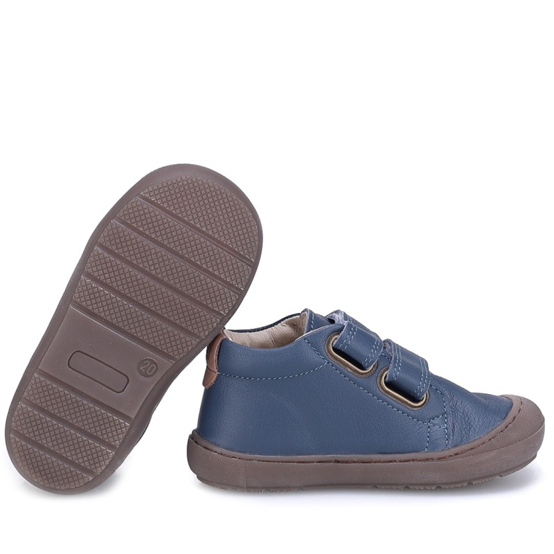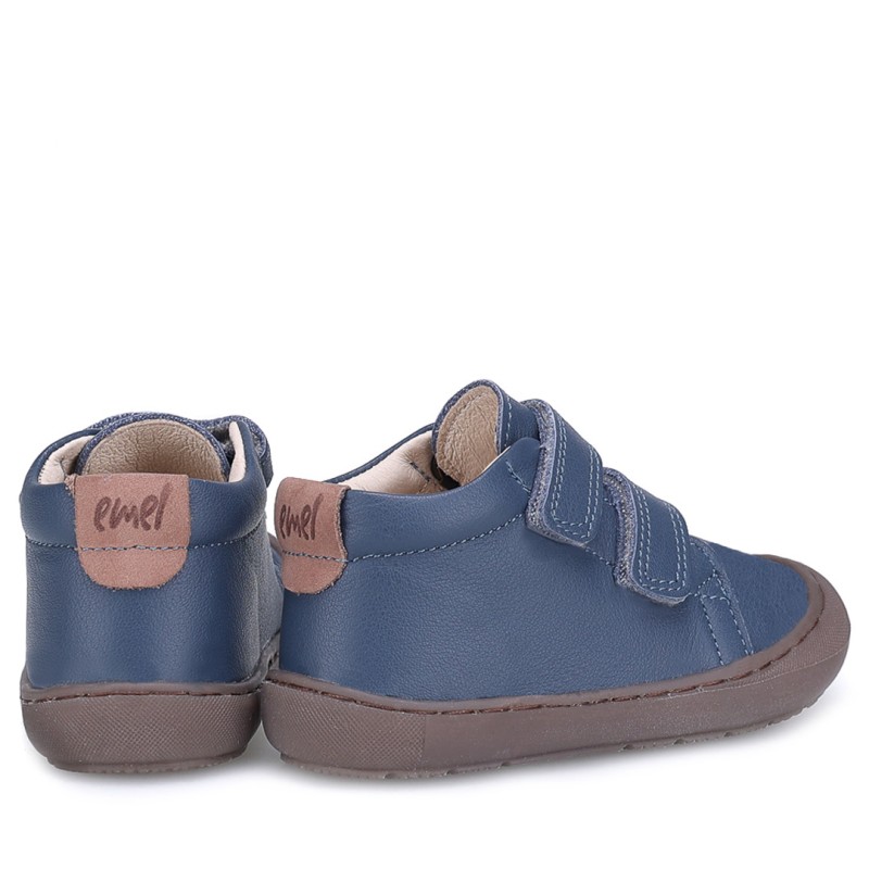 Model bucików Emel dla maluszków. Stworzony z myślą o dzieciach, które uczą się chodzić i doskonalą tę umiejętność. Trzewiki wykonane są w całości z naturalnej skóry, mają lekko wzmocniony zapiętek, zapięcie na rzep pozwala na odpowiednią regulację tęgości. Kauczukowa, antypoślizgowa podeszwa obejmuje również szeroką strefę palców. Dzięki czemu zabezpiecza paluszki przed nierównościami terenu, a buty przed otarciem nosków.