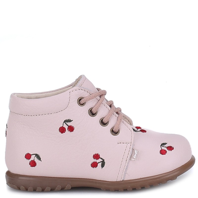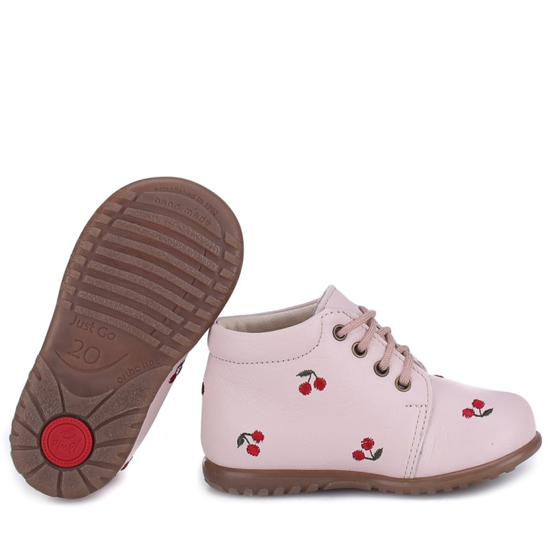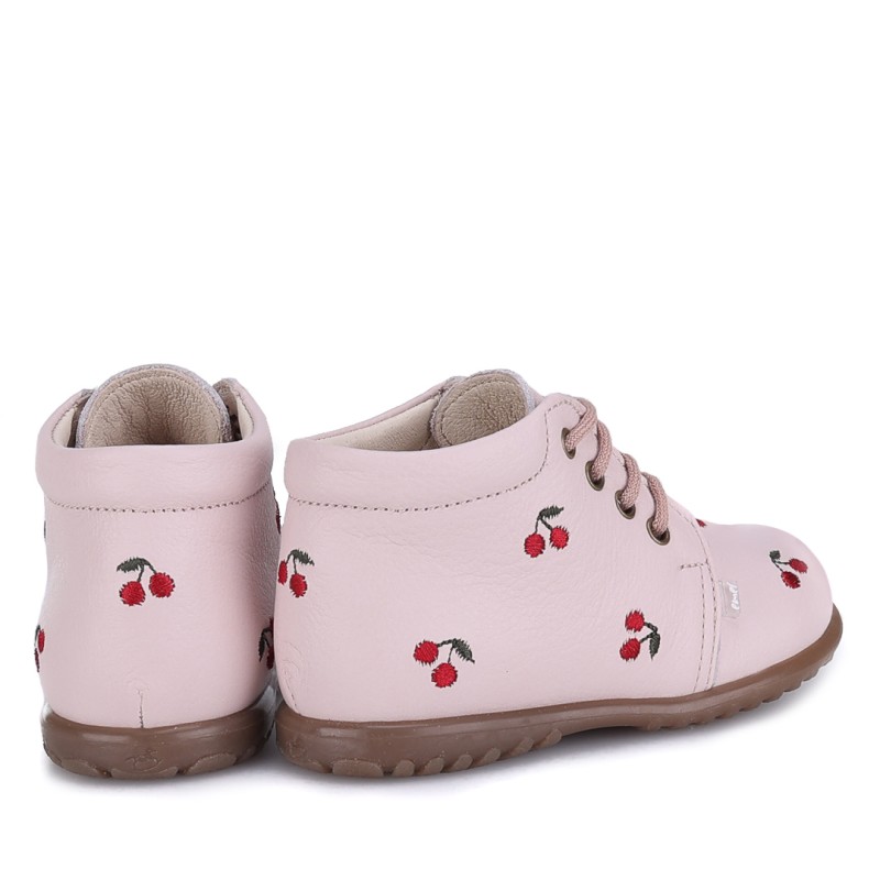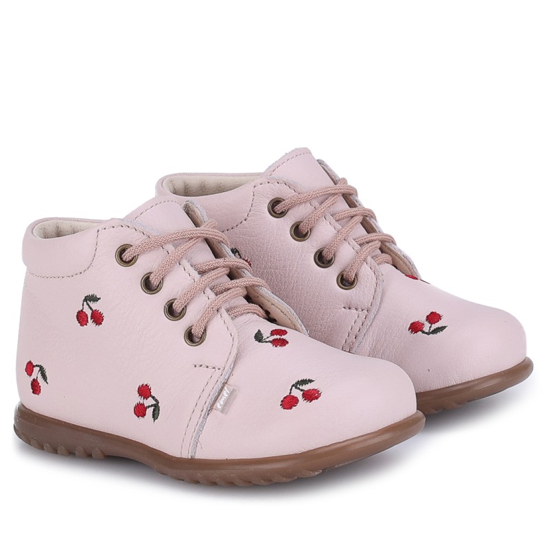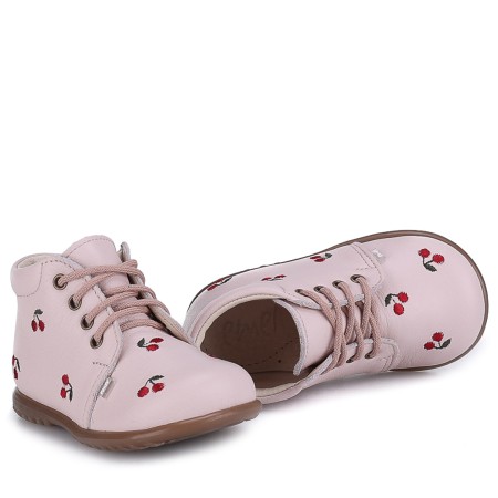 Dzięki lekkiej i elastycznej podeszwie, buty doskonale sprawdzają się podczas nauki chodzenia, wspierając naturalne ruchy malucha. Subtelny haft z motywem wiśni dodaje uroku i sprawia, że model ten wyróżnia się niepowtarzalnym designem.