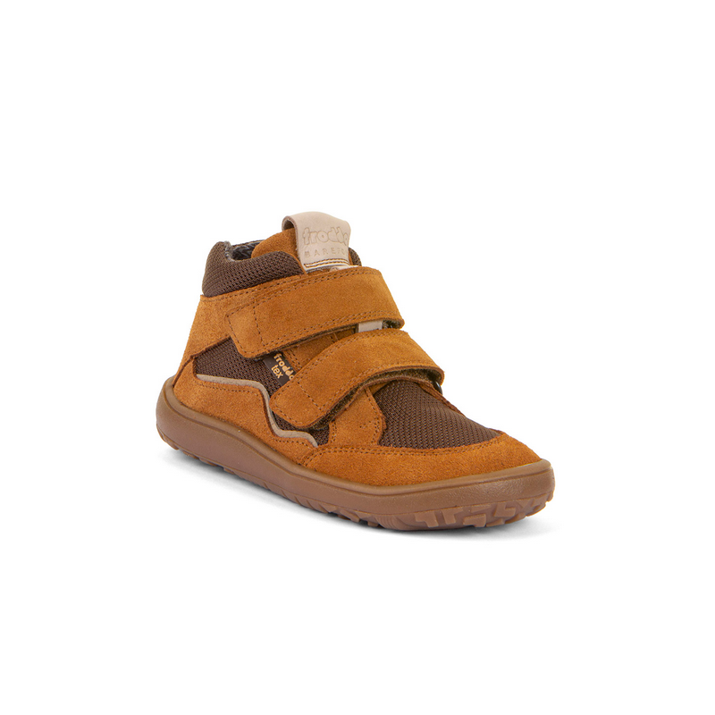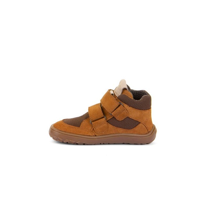 Froddo Lekko Ocieplane Trzewiki Barefoot TEX AUTUMN G3110266-4 COGNAC z Membraną w błyszczącym stonowanym różu. uniwersalnym, praktycznym kolorze. Model barefoot charakteryzuje się szerokim przodem, tak aby paluszki miały miejsce oraz stopa mogła rosnąc i przesuwać się podczas chodu. Lekko wzmocniony zapiętek, mocne rzepy i prosta, wyjmowana wkładka.