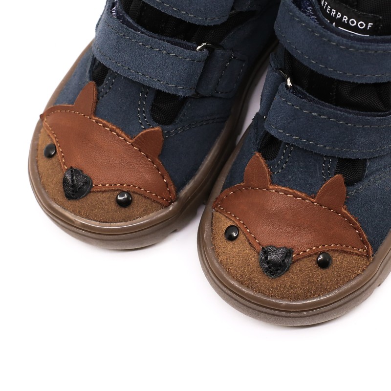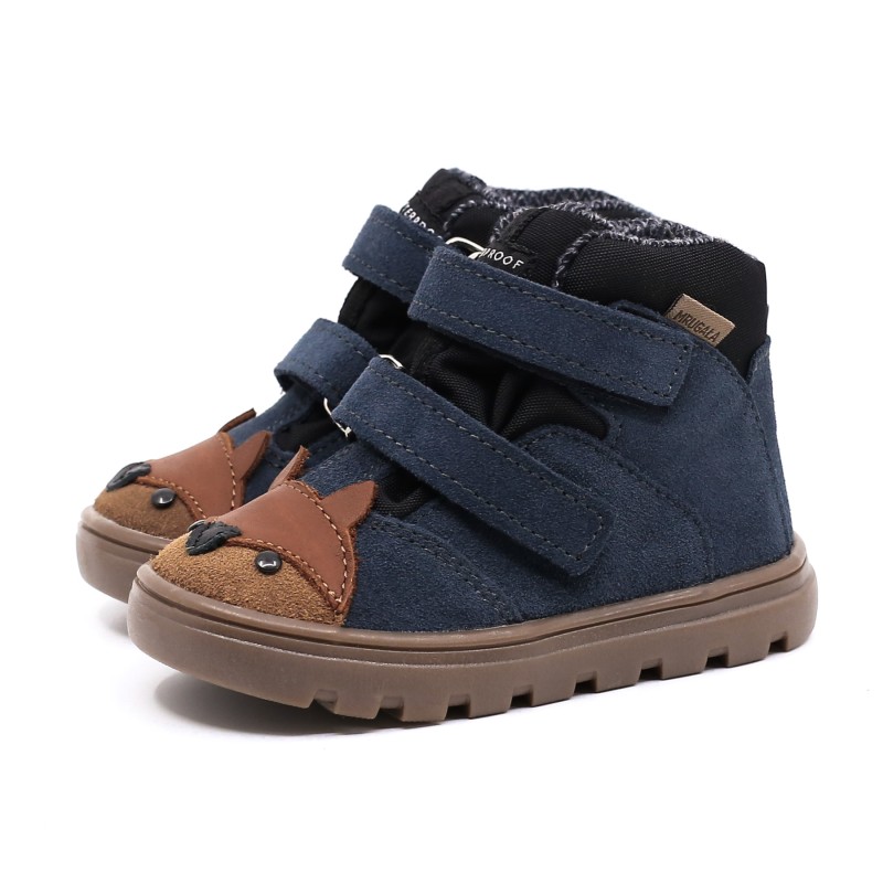 Dziecięce trzewiki Mrugała Andy Fox Ocean to połączenie komfortu, trwałości i uroczego designu. Wykonane z naturalnej skóry welurowej z hydrofobową powłoką, wyposażone w membranę "te-por" oraz ocieplaną wkładkę, gwarantują ciepło i suchość nawet podczas jesienno-zimowych spacerów. Antypoślizgowa podeszwa TR