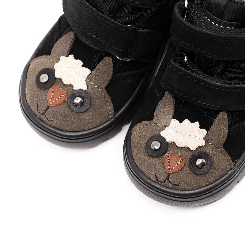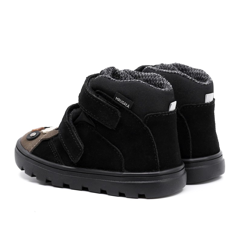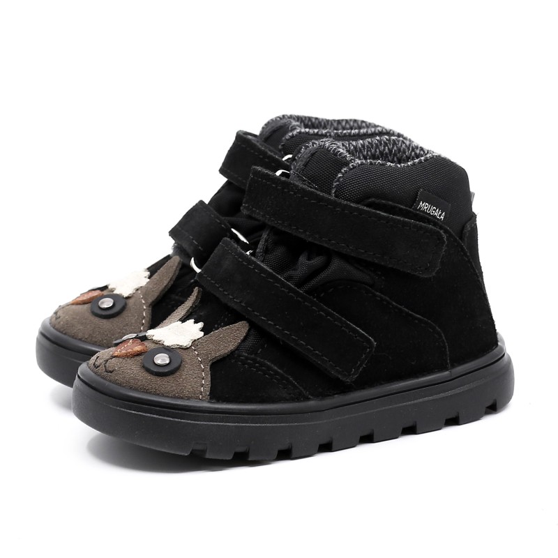 Dziecięce trzewiki Mrugała Andy Alpaca Black to połączenie komfortu, trwałości i uroczego designu. Wykonane z naturalnej skóry welurowej z hydrofobową powłoką, wyposażone w membranę "te-por" oraz ocieplaną wkładkę, gwarantują ciepło i suchość nawet podczas jesienno-zimowych spacerów. Antypoślizgowa podeszwa TR