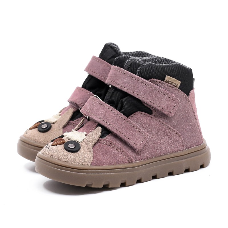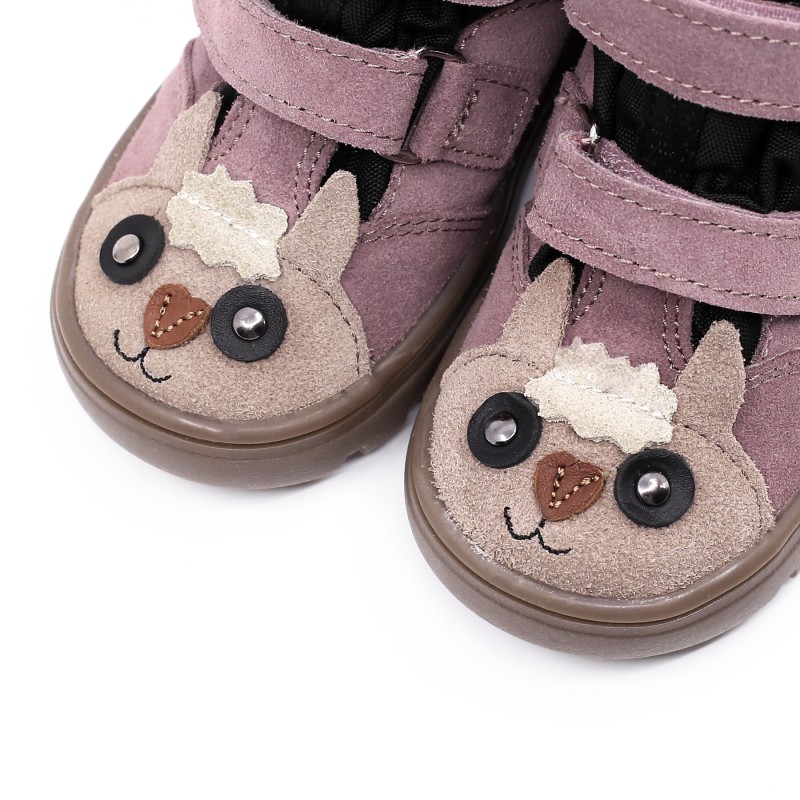 Dziecięce trzewiki Mrugała Andy Alpaca Lawenda to połączenie komfortu, trwałości i uroczego designu. Wykonane z naturalnej skóry welurowej z hydrofobową powłoką, wyposażone w membranę "te-por" oraz ocieplaną wkładkę, gwarantują ciepło i suchość nawet podczas jesienno-zimowych spacerów. Antypoślizgowa podeszwa TR