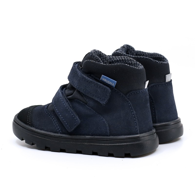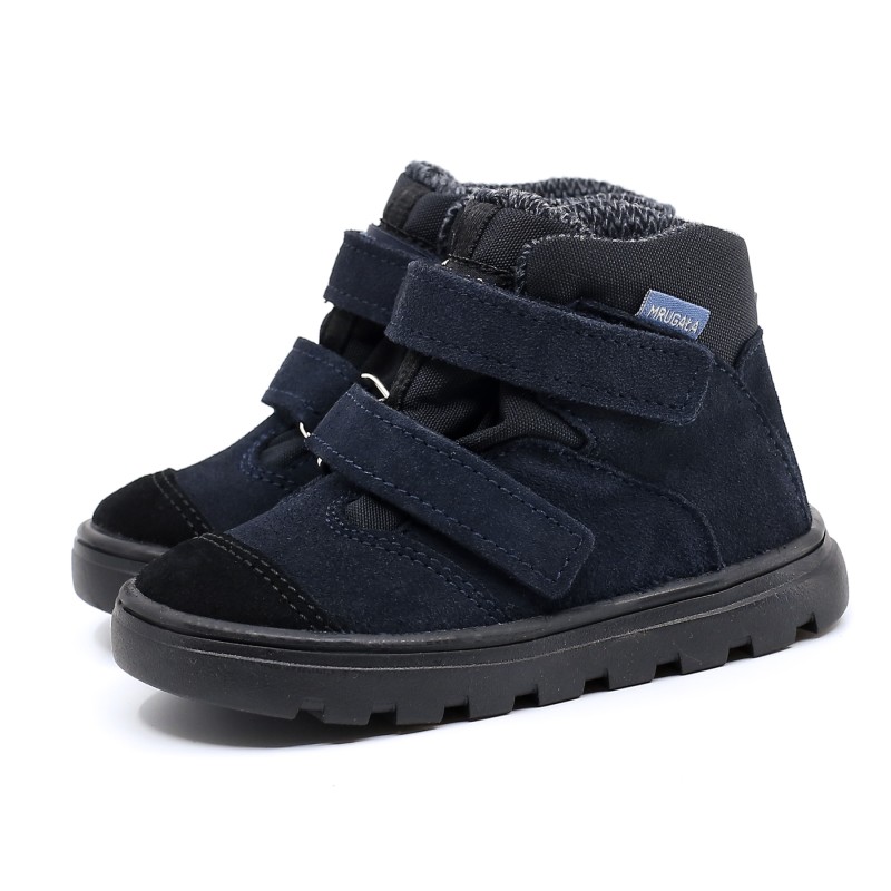 Dziecięce trzewiki Mrugała NEO BLU - komfort, trwałość i design. Wykonane z naturalnej skóry welurowej z hydrofobową powłoką, wyposażone w membranę "te-por" oraz ocieplaną wkładkę, gwarantują ciepło i suchość nawet podczas jesienno-zimowych spacerów. Antypoślizgowa podeszwa TR i podwójne rzepy zapewniają bezpieczeństwo i wygodę noszenia. Idealne na chłodne dni od –5°C do +15°C.