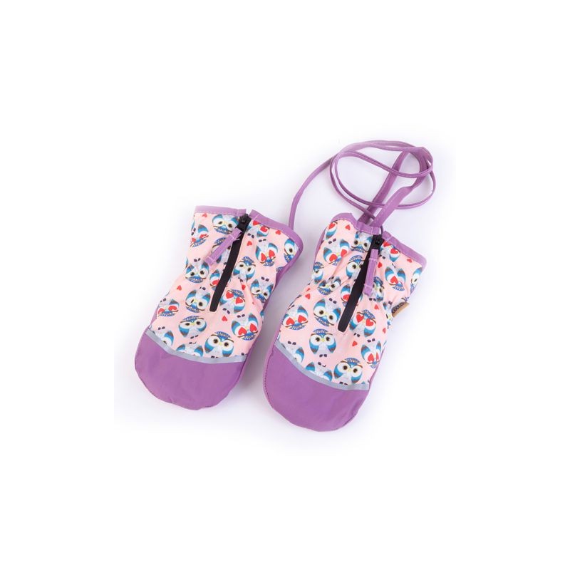 TUTU Rękawice Dziecięce Bez Palców Rozsuwane na Sznureczku, Fioletowe z Sówkami