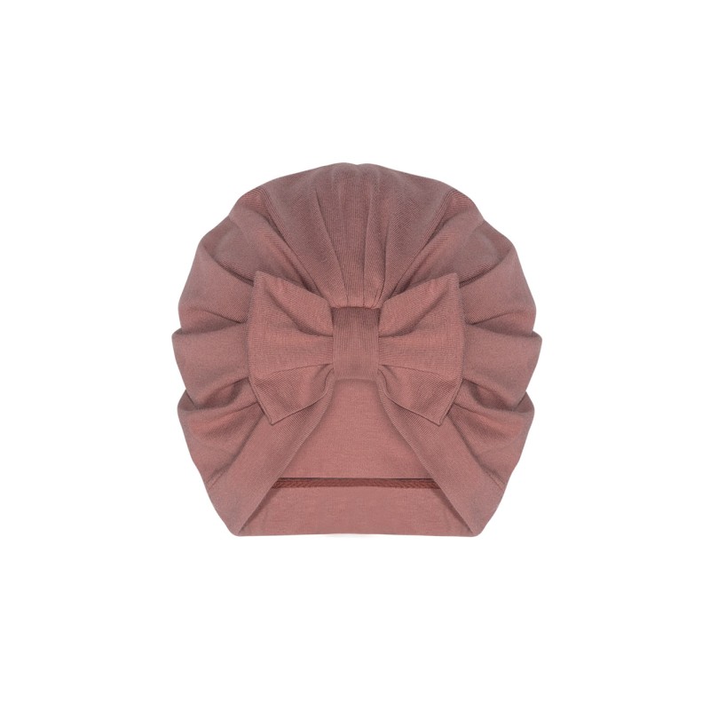 Bawełniana czapka w modnym kroju Turbanu wykończonego elegancką kokardą. Wykonana z naturalnej, organicznej bawełny z niewielkim dodatkiem elastanu dla lepszego dopasowania. Czapka doskonale przylega do głowy oraz uszu dziecka, zapewniając odpowiedni komfort termiczny. Wykonana z pojedynczej warstwy cienkiej bawełny sprawdzi się w ciepłe dni.