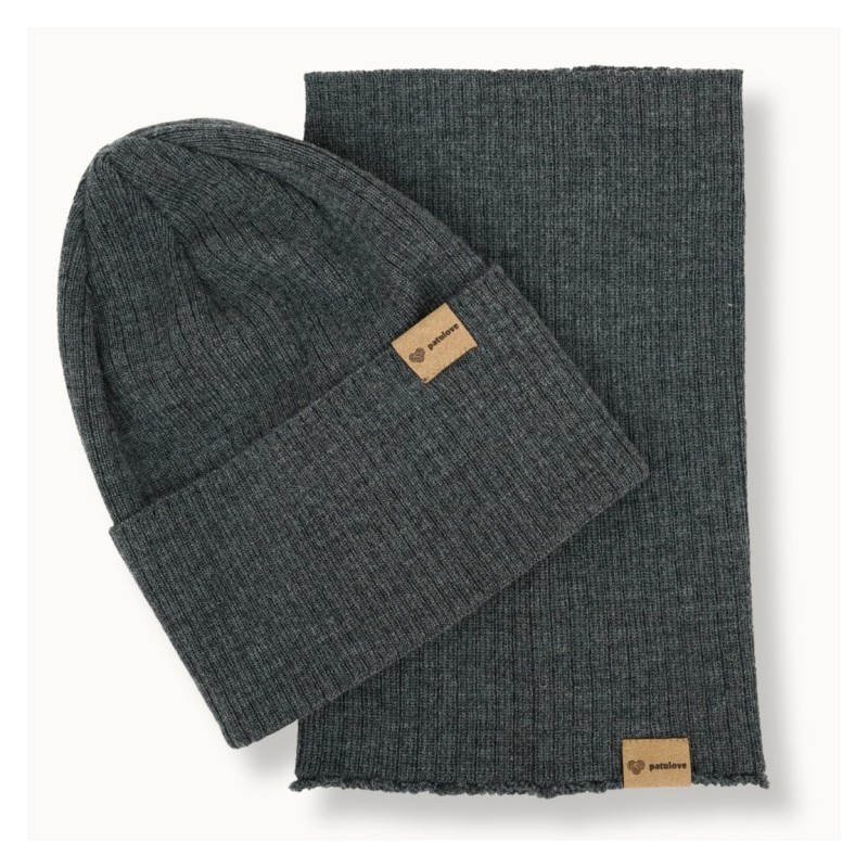 Patulove Merino Set Całoroczny - czapka i komin GRAPHITE