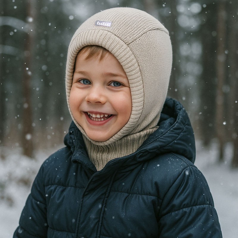 TUTU Kominiarka Merino 100% zimowa dla dziecka z membraną na uszy, Beżowa