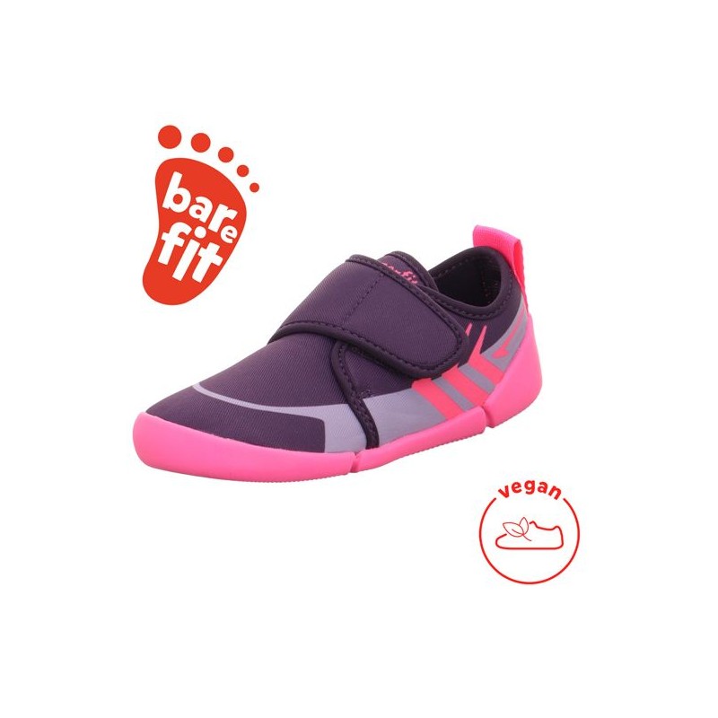 Obuwie Superfit "Barefit" odwzorowuje chodzenie na boso. Minimalna prosta podeszwa izoluje od nierówności jednocześnie dbając o rozwój sensoryczny i motoryczny dziecka, bez nadmiernej ingerencji w stopy. Noski butów są szerokie, tak, aby nie krępować ruchów placów podczas przetaczania stopy. Dzięki odpowiedniej konstrukcji cholewki, zapiętek lekko utrzymuje stopę w odpowiednim ułożeniu, a zapięcie na rzep pozwala na lepsze dopasowanie kapci oraz naukę samodzielności w przedszkolu czy szkole.