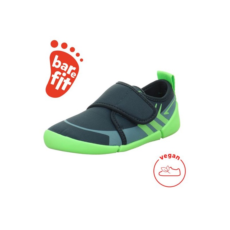 Obuwie Superfit "Barefit" odwzorowuje chodzenie na boso. Minimalna prosta podeszwa izoluje od nierówności jednocześnie dbając o rozwój sensoryczny i motoryczny dziecka, bez nadmiernej ingerencji w stopy. Noski butów są szerokie, tak, aby nie krępować ruchów placów podczas przetaczania stopy. Dzięki odpowiedniej konstrukcji cholewki, zapiętek lekko utrzymuje stopę w odpowiednim ułożeniu, a zapięcie na rzep pozwala na lepsze dopasowanie kapci oraz naukę samodzielności w przedszkolu czy szkole.