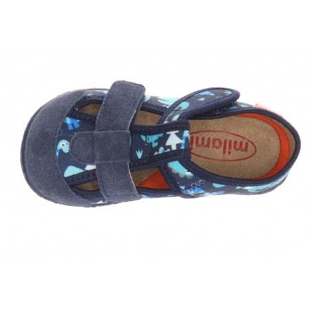 Kapcie Milami zostały zainspirowane naturalnymi, zdrowymi krokami. ich anatomiczna wkładka, wzmocniony zapiętek oraz szeroki nosek wpływają na prawidłowy rozwój stóp, chodu i postawy u dzieci. Aby zapewnić maksymalny komfort i stabilność kapcie Milami posiadają antypoślizgową podeszwę, anatomiczną wkładkę, która dopasowuje się do stopy. A w miejscach najbardziej wystawionych na działanie mechaniczne czyli noski i rzepy wykończone są wytrzymałą, naturalną skórą.