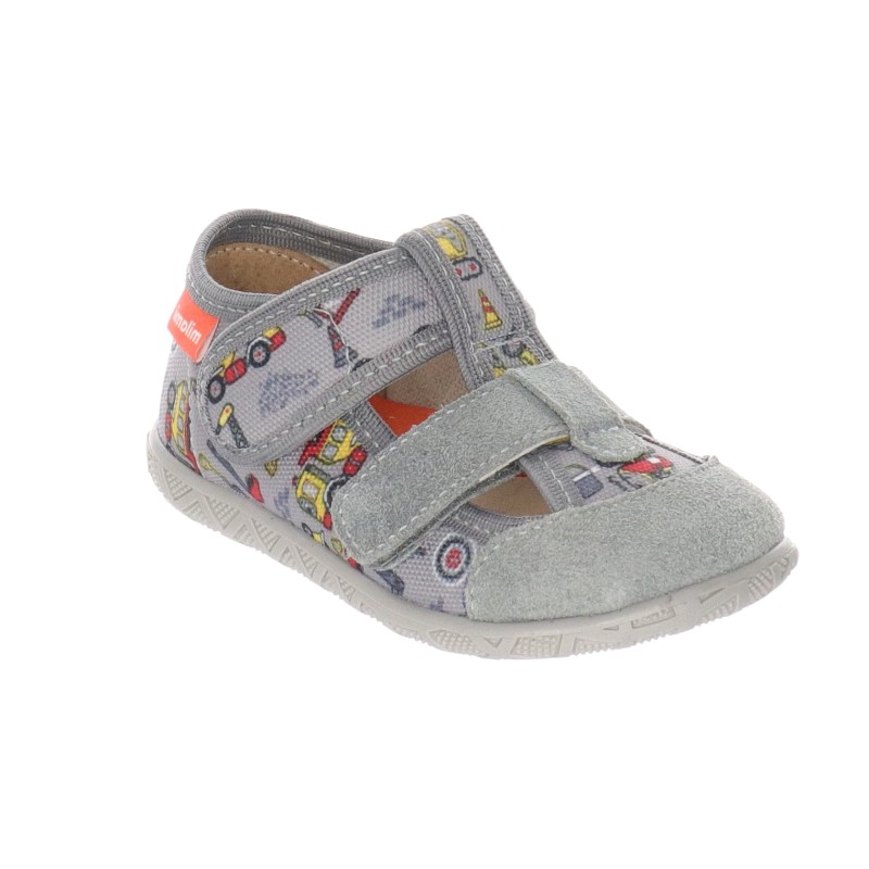 Wygodne kapcie dziecięce Milami model 118-BR-32 to dobry wybór do żłobka, przedszkola lub domu. Szara cholewka z barwnym nadrukiem w pojazdy budowlane – koparki, betoniarki, znaki drogowe – przypadnie do gustu małym miłośnikom maszyn. Praktyczne zapięcie na rzep ułatwia samodzielne zakładanie i zdejmowanie butów.