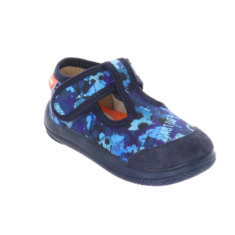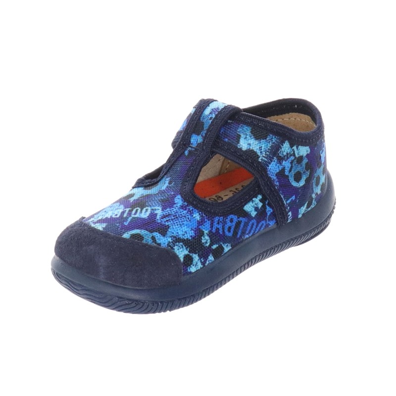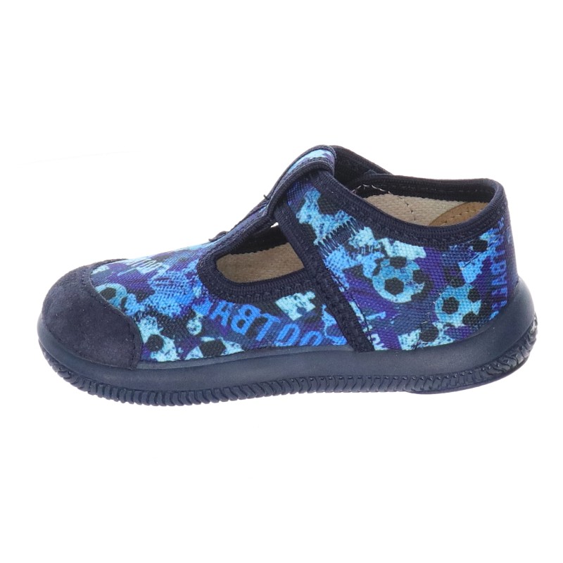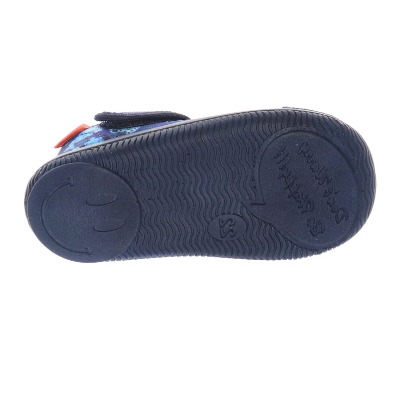 Niebieskie kapcie dziecięce Milami z nadrukiem piłek - obuwie domowe i przedszkolne, w uniwersalnym niebieskim kolorze. Wygodne zapięcie na rzep ułatwia samodzielne zakładanie i dopasowanie do stopy. Miękka, elastyczna podeszwa zapewnia komfort i bezpieczeństwo podczas zabawy i chodzenia. Oddychający materiał wewnętrzny i lekka konstrukcja sprawiają, że to doskonały wybór na co dzień.