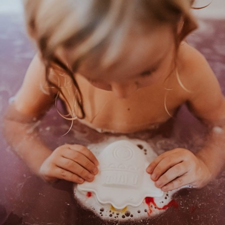 Bomba do kąpieli Mini U Rakieta to delikatna dla skóry kula kąpielowa w kształcie rakiety kosmicznej, która po wrzuceniu do wody barwi jej kolor na tęczowo! Do tego niesamowicie pachnie kwiatem wiśni oraz to co dzieci kochają najbardziej wiruje w wodzie tworząc wspaniałe tęczowe wzory. To produkt, który powstał na bazie sprawdzonych i bezpiecznych składników, nie był testowany na zwierzętach, nadaje się dla wegan oraz alergików.