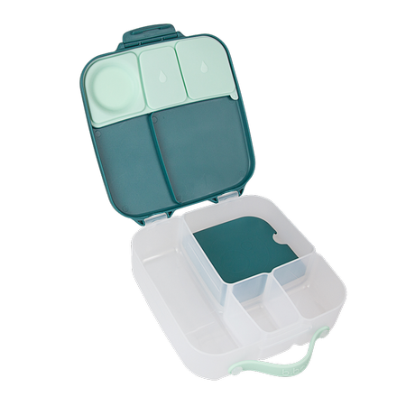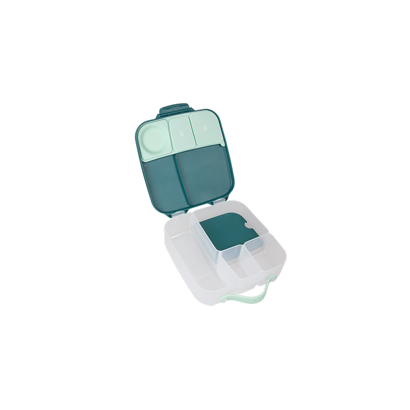 Duży lunchbox b.box jest produktem funkcjonalnym i wygodnym w użytkowaniu. Do przenoszenia służy poręczny uchwyt. Klips zamykający dobrze trzyma a jednocześnie z łatwością daje się otworzyć nawet przedszkolakom. Także mycie nie nastręcza kłopotów. Nie ma tu trudno dostępnych zakamarków, ruchome przegrody są wyjmowane a silikonowa uszczelka na pokrywce zdejmowana. Dzięki temu szybko i dokładnie umyjesz i osuszysz lunchbox. Pudełko z jedzeniem możesz także schować do lodówki.