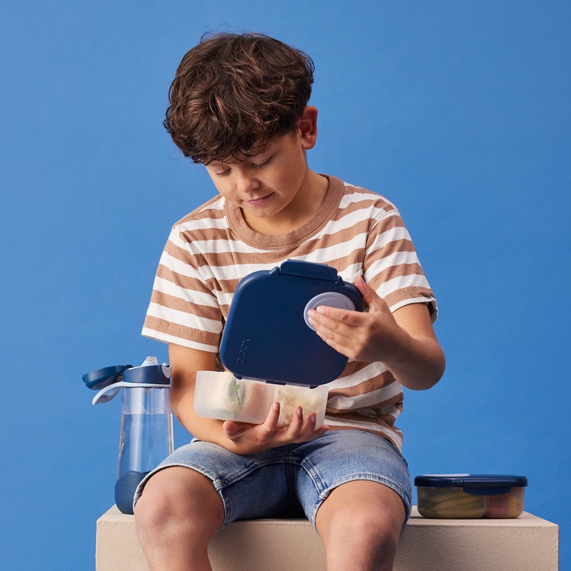 Mini lunchbox b.box jest zgrabny i poręczny. Dziecko może wygodnie trzymać go w dłoni dzięki zintegrowanemu uchwytowi ale także, może wsunąć go do plecaka lub torby. W sam raz do szkoły, gdy jest mniej lekcji lub na krótką wycieczkę i dłuższy spacer.