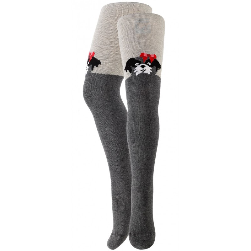Nasze rajstopki to prawdziwa uczta dla każdej dziewczynki! Ich kolorystyka jasno i ciemno szara została podzielona w niezwykle uroczą formę. Poniżej kolana dominuje ciemny odcień z wykończeniem w postaci uroczego pieska, który dumnie nosi czerwoną kokardkę. Powyżej kolana natomiast znajdziesz jasnoszarą bazę, która nadaje rajstopkom oryginalności i stylu. To detale, które sprawią, że Twoja mała księżniczka będzie czuć się wyjątkowo.
