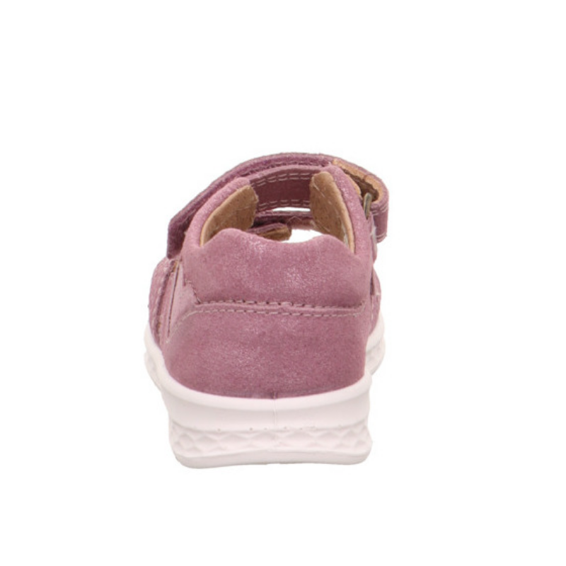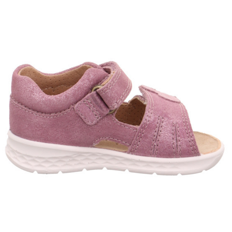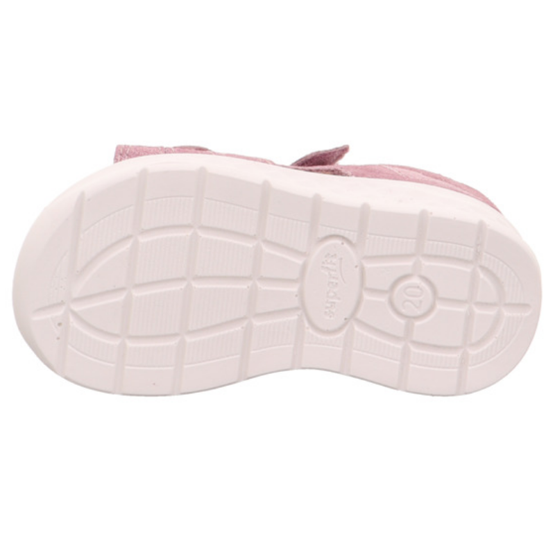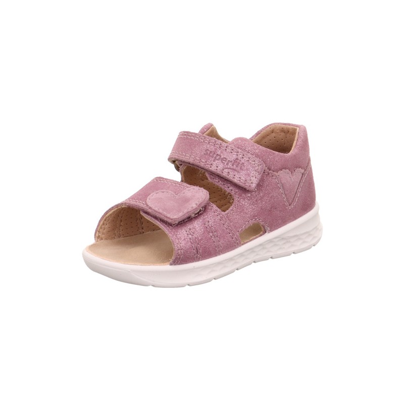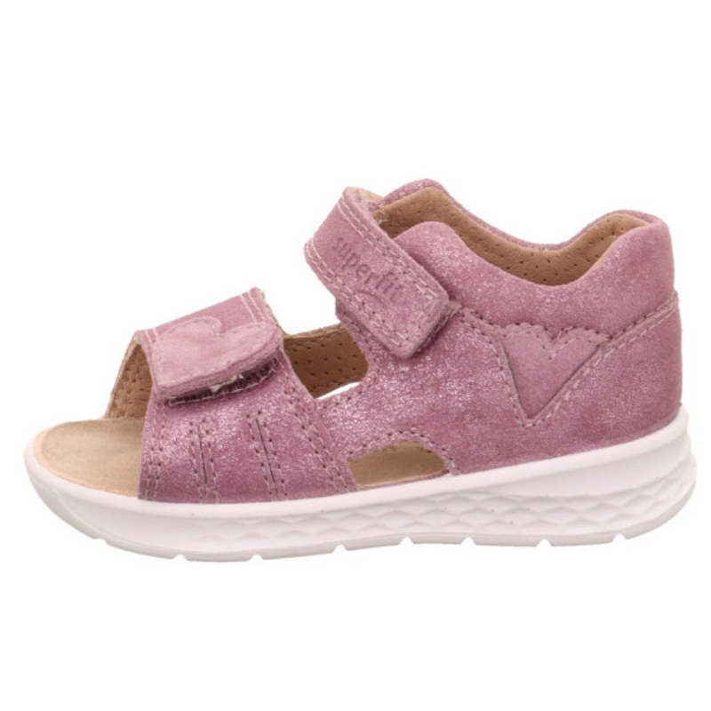 Sandały Superfit LAGOON w delikatnej różowej kolorystyce, ozdobionej subtelnym serduszkiem to idealny wybór dla aktywnych maluchów. Wykonane z oddychającej, naturalnej skóry, zapewniają komfort przez cały dzień. Podeszwa o strukturze plastra miodu jest elastyczna, a jednocześnie stabilna, zapewniając doskonałą przyczepność, co sprawia, że dzieci mogą swobodnie biegać i bawić się na różnych nawierzchniach. Sandały są wyposażone w dwa rzepy, które umożliwiają szybkie i wygodne zakładanie, a także precyzyjne dopasowanie do stopy. Miękka, skórzana wkładka oraz wzmocniony zapiętek zwiększają wygodę noszenia, a subtelne, połyskujące serduszko ozdabiający rzep przy palcach dodaje uroku i sprawia, że te sandały będą ulubionym wyborem na lato.