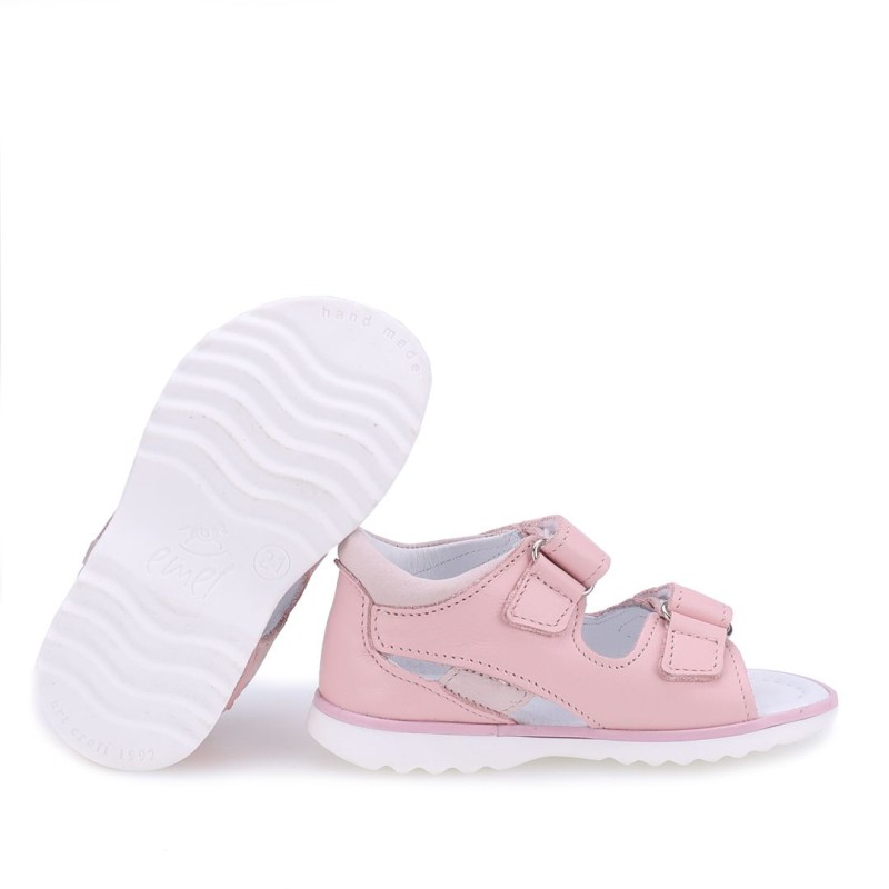 Sandałki Emel Puerto 2766A-6 na bardzo miękkiej podeszwie, odpowiednie do nauki i doskonalenia sztuki chodzenia. Wykonane z najwyższej jakości materiałów. Zapinane na podwójny rzep, wzmocniony zapiętek. Idealne na stopy wąskie i o standardowej tęgości.