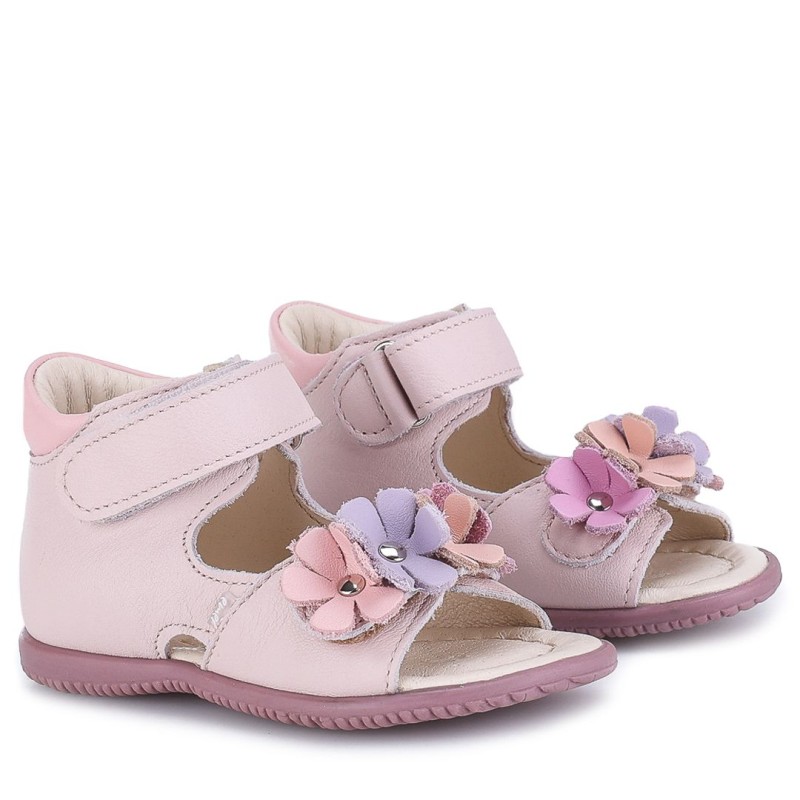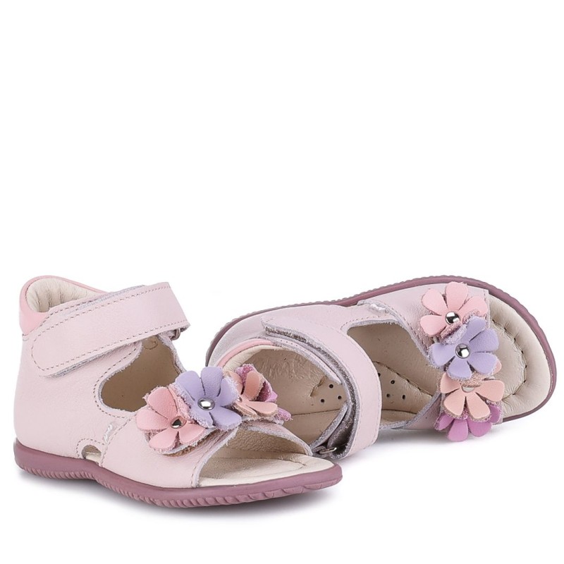 Emel Roczki Sandały Malaga ES 2428F-1, Różowe Kwiatuszki Zakryta Pięta