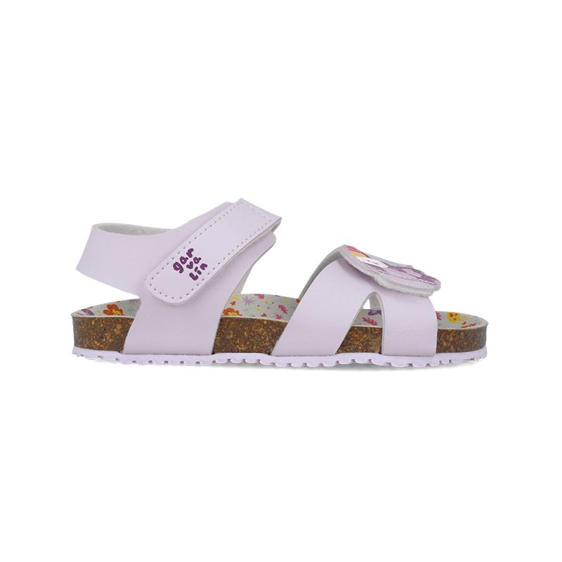 Kolorowa odsłona klasycznych sandałów dla dzieci na wytrzymałym, naturalnym, korkowym spodzie. Anatomiczna wkładka pomaga utrzymać prawidłowe ułożenie stóp oraz wpływa na odpowiednią postawę całego ciała. Wkładka pokryta oddychającą, antybakteryjną i chłonącą wilgoć mikrofibrą, dodatkowo zdobiona kolorowym printem, który bardzo podoba się dziewczynkom.