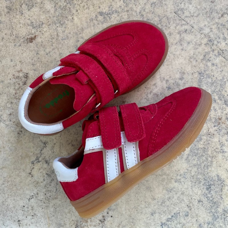 Skórzane sneakersy dziecięce Froddo LOU w doskonałym czerwonym kolorze, to doskonały wybór dla dzieci o węższej stopie lub o standardowej szerokości. Inspirowane klasycznymi modelami butów sportowych, np. Adidas Samba, łączą sportowy styl z wysoką jakością wykonania. Idealne do codziennego noszenia.