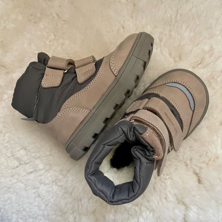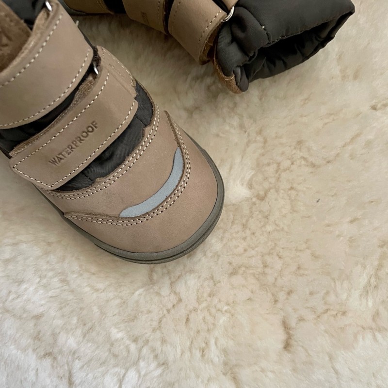Materiał zewnętrzny to wysokiej jakości skóra naturalna połączona z wytrzymałym materiałem wodoodpornym, który gwarantuje, że stopy Twojego dziecka pozostaną suche nawet podczas lekkich i przelotnych opadów. Dodatkową warstwą ochronną jest membrana Te-Por, która sprawia, że buty stają się nieprzemakalne, a Twoje dziecko może bawić się na śniegu bez obaw.