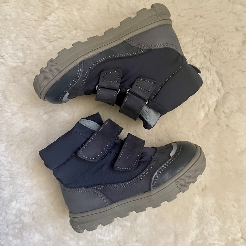 Buty posiadają zapięcie na podwójny rzep, ułatwiający zakładanie i zdejmowanie, co jest wygodne zarówno dla rodzica, jak i dziecka. Język buta jest połączony z cholewką,aby woda nie dostała się do wnętrza buta, co jest istotne, gdy Twoje dziecko biega po mokrym i śnieżnym terenie.