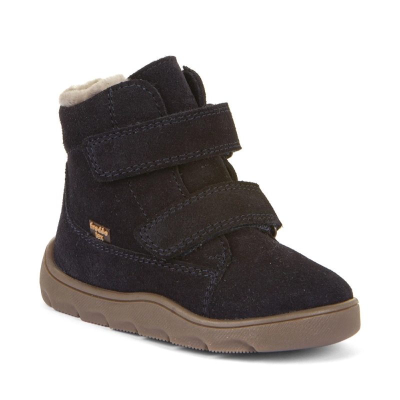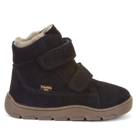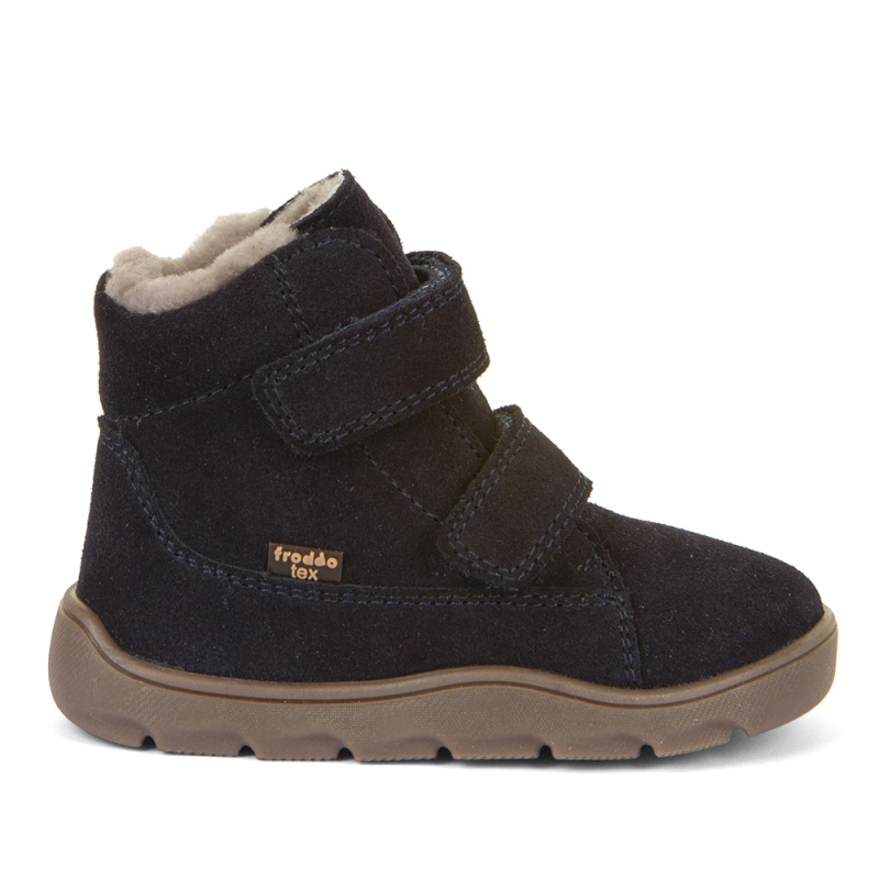 Froddo Ocieplane Wełną Trzewiki Barefoot ZERU TEX FURRY G2110151 DARK BLUE z Membraną w błyszczącym stonowanym różu. uniwersalnym, praktycznym kolorze. Model barefoot charakteryzuje się szerokim przodem, tak aby paluszki miały miejsce oraz stopa mogła rosnąc i przesuwać się podczas chodu. Lekko wzmocniony zapiętek, mocne rzepy i prosta, wyjmowana wkładka.