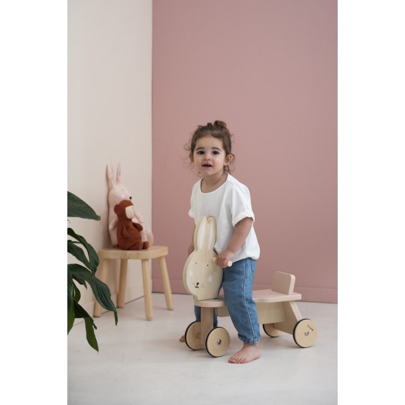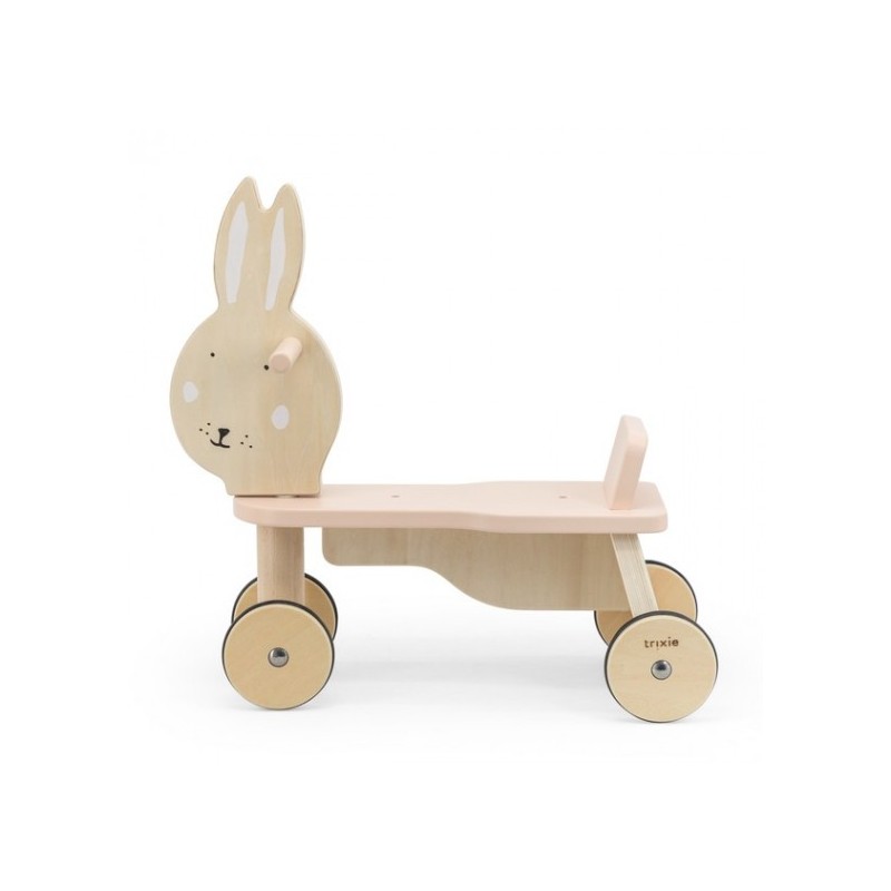 Trixie Baby DrewnianyBiegowy Rower na 4 Kołach z Królikiem - pierwszy balansowy rower Twojego dziecka