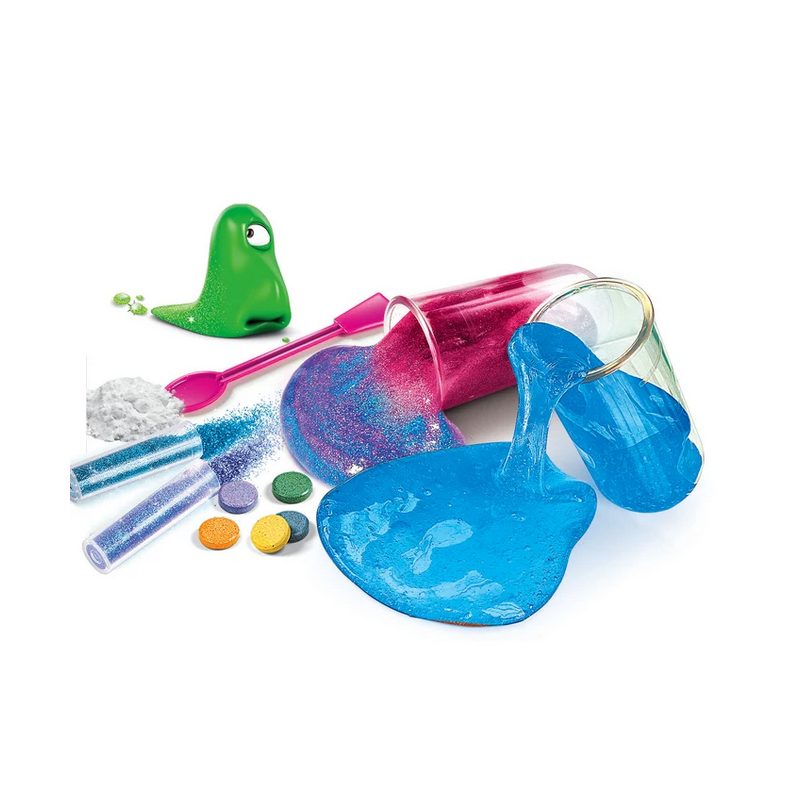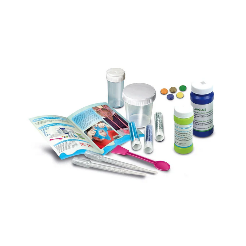 Dzięki zawartym w zestawie barwnikom, brokatom i aktywatorom, mali naukowcy mogą tworzyć slimy w wielu kolorach i konsystencjach – od błyszczących po superciągnące!