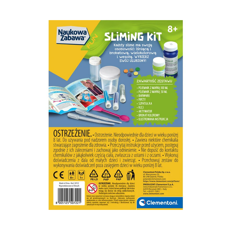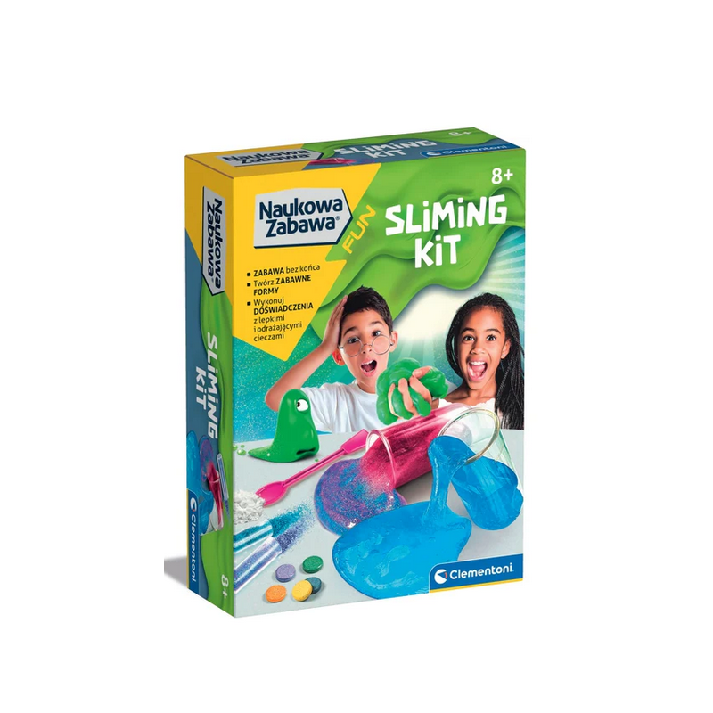 Zestaw Naukowa Zabawa FUN – Sliming Kit to prawdziwe mini laboratorium chemiczne, w którym dzieci mogą eksperymentować z różnymi substancjami i tworzyć rozciągliwe, błyszczące masy o wyjątkowych właściwościach.