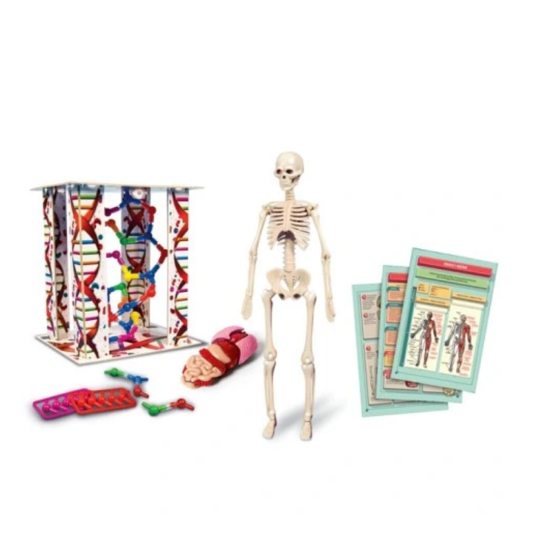 Dzięki modelowi 3D dziecko może złożyć szkielet, organy wewnętrzne, a także poznać strukturę cząsteczki DNA – wszystko w jednym zestawie edukacyjnym!