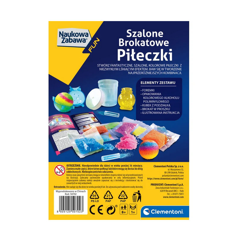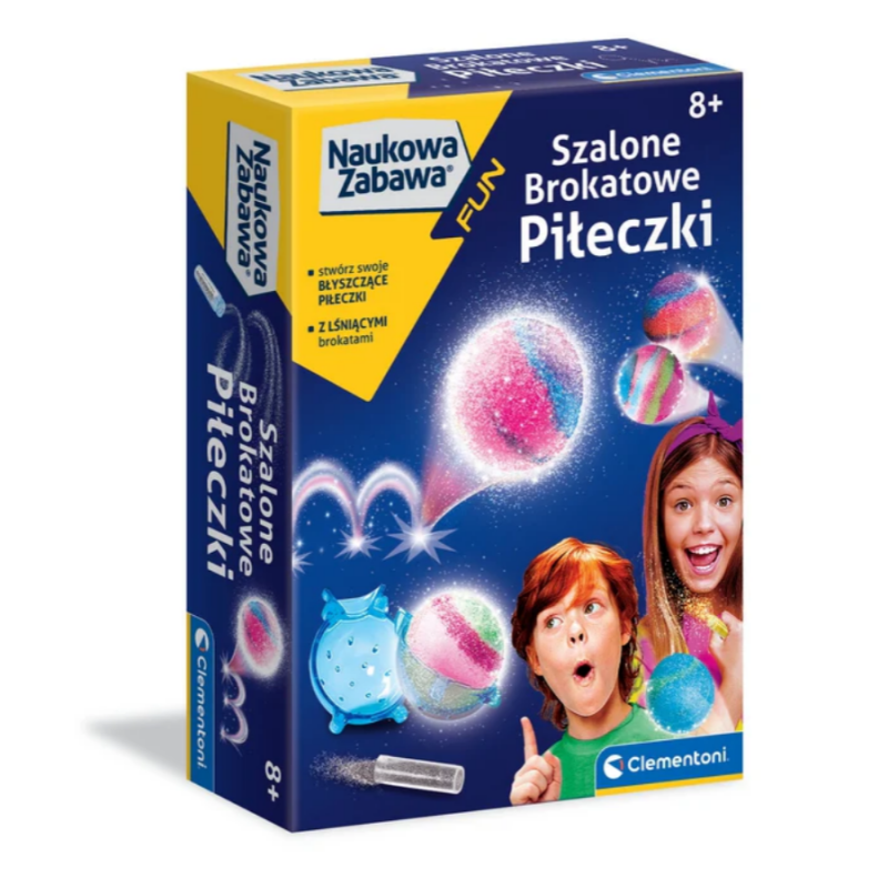 Zestaw Naukowa Zabawa FUN – Szalone Brokatowe Piłeczki od Clementoni pozwala tworzyć fantastyczne, błyszczące piłeczki, które naprawdę skaczą!