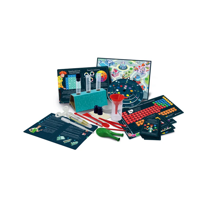 Zestaw Naukowa Zabawa LAB – Fascynująca Chemia od Clementoni to nie tylko laboratorium pełne eksperymentów, ale też emocjonująca gra przygodowa, w której każde doświadczenie przybliża młodych naukowców do rozwiązania zagadki Doktora Geniusza.