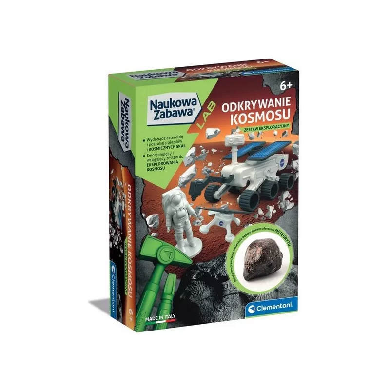 Zestaw Naukowa Zabawa LAB – Odkrywanie Kosmosu od Clementoni (licencja NASA) pozwoli dziecku wcielić się w prawdziwego odkrywcę kosmosu i archeologa meteorytów.