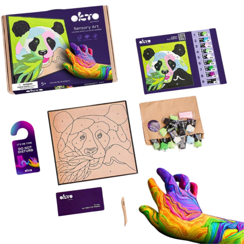 Stwórz wyjątkowy obraz 3D z uroczą pandą dzięki zestawowi OKTO Sensory Art – PANDA! To kreatywna kolorowanka po numerach, w której klasyczne farby zastąpiono miękką, elastyczną masą plastyczną. Dziecko wypełnia pola zgodnie z numerami, a masa tworzy efekt wypukłej, trójwymiarowej tekstury.
